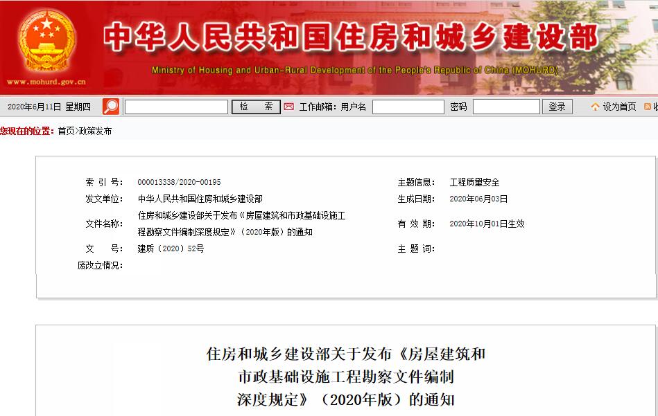 住房和城鄉(xiāng)建設(shè)部關(guān)于發(fā)布《房屋建筑和市政基礎(chǔ)設(shè)施工程勘察文件編制深度規(guī)定》(2020年版)的通知